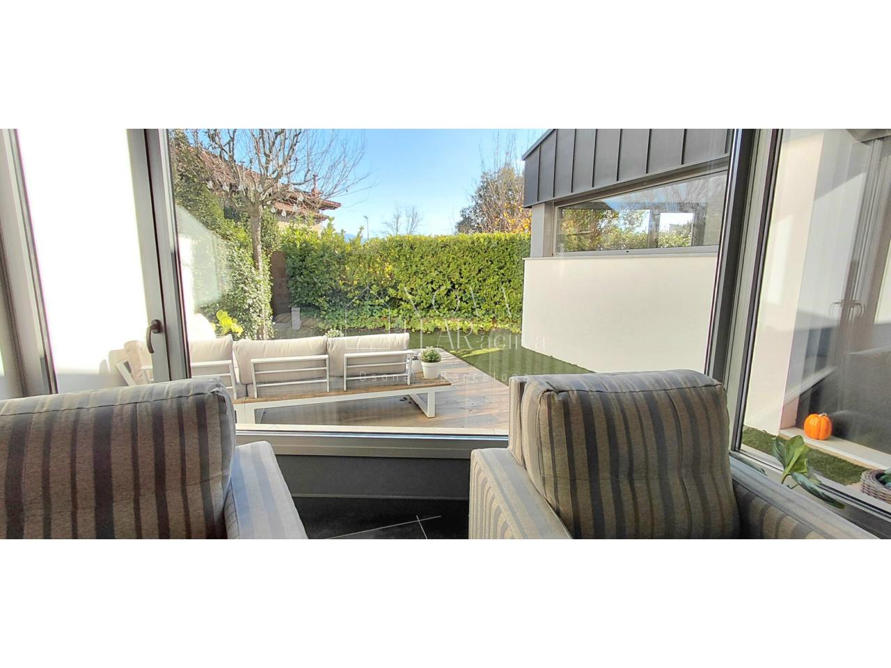 Accedemos a la vivienda por la planta principal desde el jardín; al entrar, nos encontramos un amplio concepto abierto de salón. La cocina, práctica y funcional, incluye una zona de lavandería; en esta misma planta dispondremos de un jardín exterior privado y de otra terraza para uso exclusivo, una habitación doble y un baño completo. En la planta superior, tenemos la suite principal con su propio baño y terraza con vistas, 2 habitaciones dobles y otro baño completo. En la parte inferior de la vivienda se encuentra el garaje privado, muy amplio para 3 coches; además, en esta zona inferior disponemos de estancias para almacenaje y zona técnica de la vivienda.
